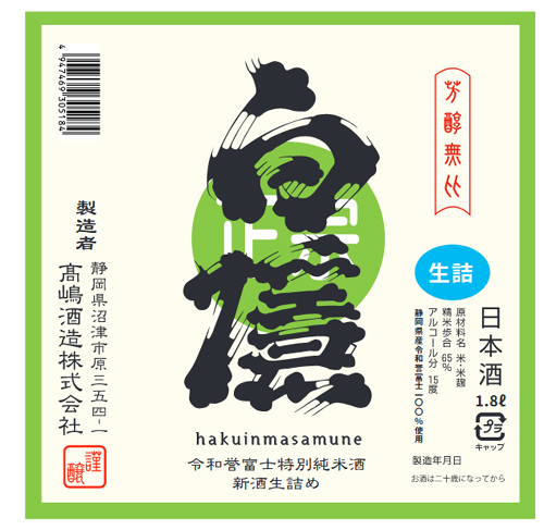 白隠正宗で令和誉富士という酒米の新米で造る特別純米酒を生詰めしたお酒という意味です。